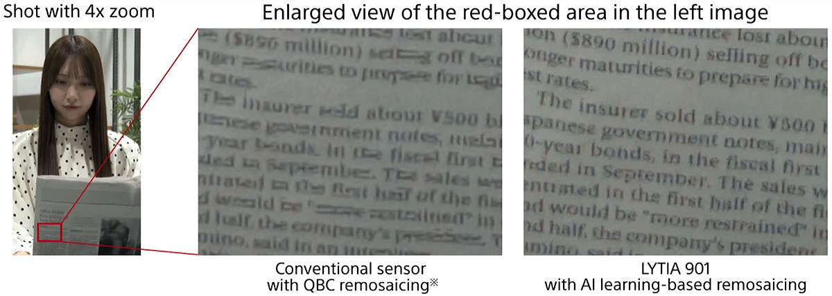Im Ergebnis leidet darunter die Auflösung, die nicht den Standard erreicht, den man sich angesichts der Megapixelzahl verspricht. Sonys jüngst vorgestellte Quad-Quad-Bayer Sensor Lytia 901 mit 200 Megapixeln soll diesem Problem künftig abhelfen. Die Idee ist, für das Remosaicing ein KI-basiertes Verfahren einzusetzen, wie es sich ja schon beim Demosaicing bewährt hat. Damit die aufwendigen Berechnungen mit hoher Geschwindigkeit ausgeführt werden können, hat Sony die KI auf den Sensorchip integriert. Smartphone-Hersteller müssen also nicht umdenken; ihre Kameramodule bekommen aus dem Sensor die gewohnten Bilddaten, nur dank der KI in höherer Qualität als gewohnt.