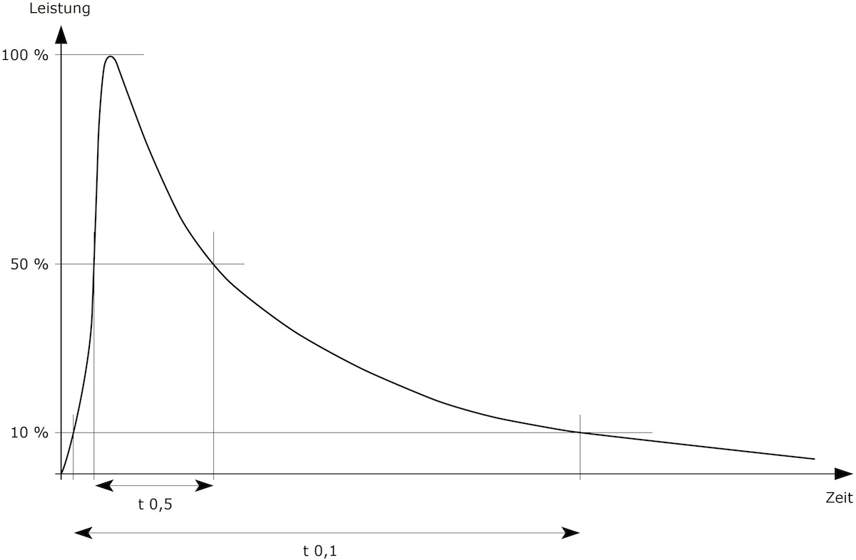Wie die Blitzdauer gemäß t0,5 und t0,1 gemessen wird